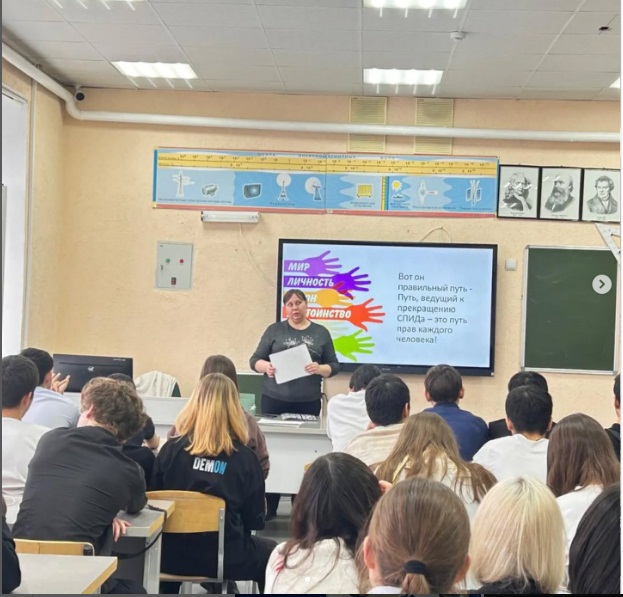 ЖИТС орталығының маманы О.С. Семухина оқушылармен және студенттермен "Неге АИТВ-инфекциясы туралы білу керек"тақырыбында кездесу өткізді